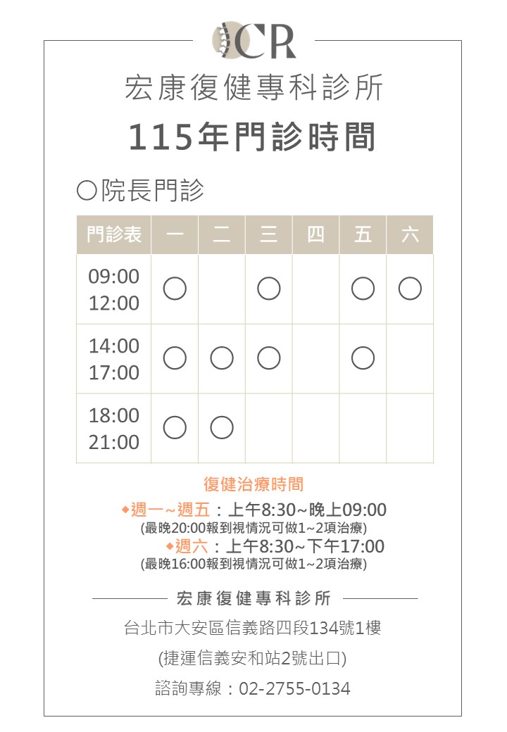 專精脊椎、關節、軟組織肌骨疾病,治療項目包括:自體血小板生長因子再生療法PRP、羊膜生長因子再生療法、高濃度葡萄糖增生療法、神經穩定解套注射療法、肌筋膜鬆解注射療法、肩關節腔擴張注射療法、激痛點注射。